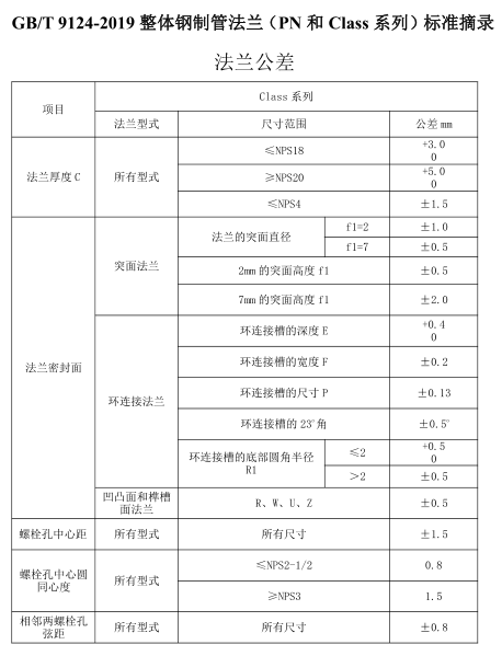 GBT9124.1-2019整体法兰(CLASS系列)尺寸及公差