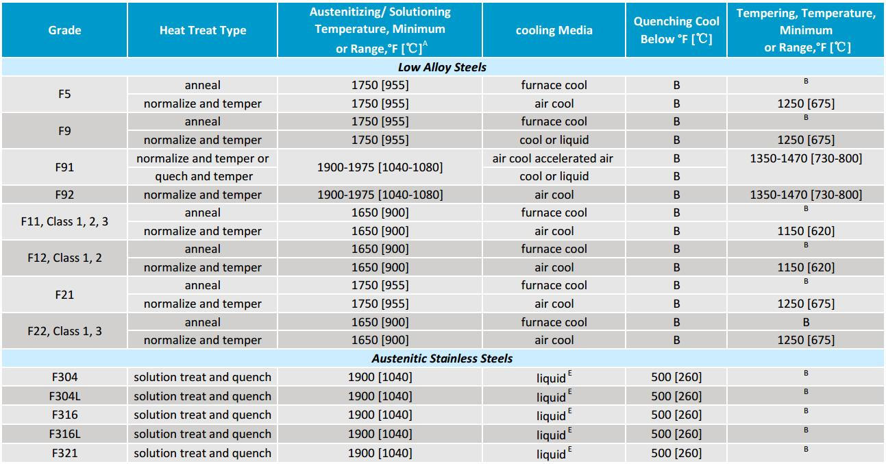 In addition, grades F1, F2 and F12, Class 1 and 2 can be done a heat treatment with a minimum temperature of 1200°F, (650℃) after final cold or hot forming.