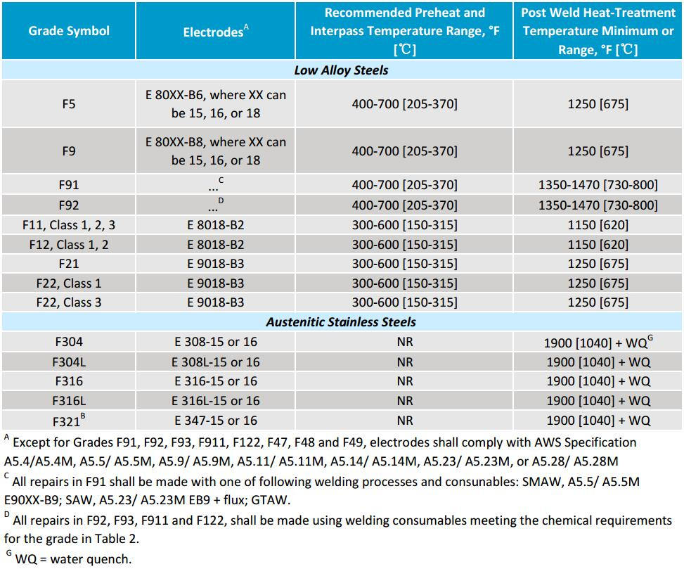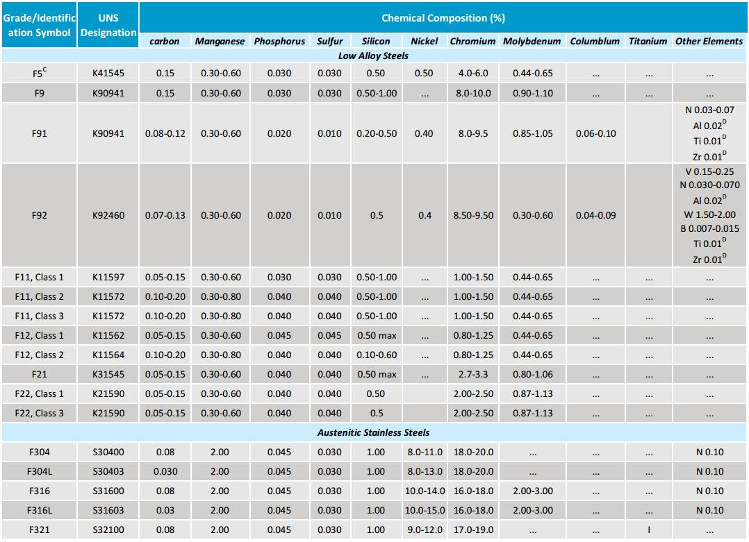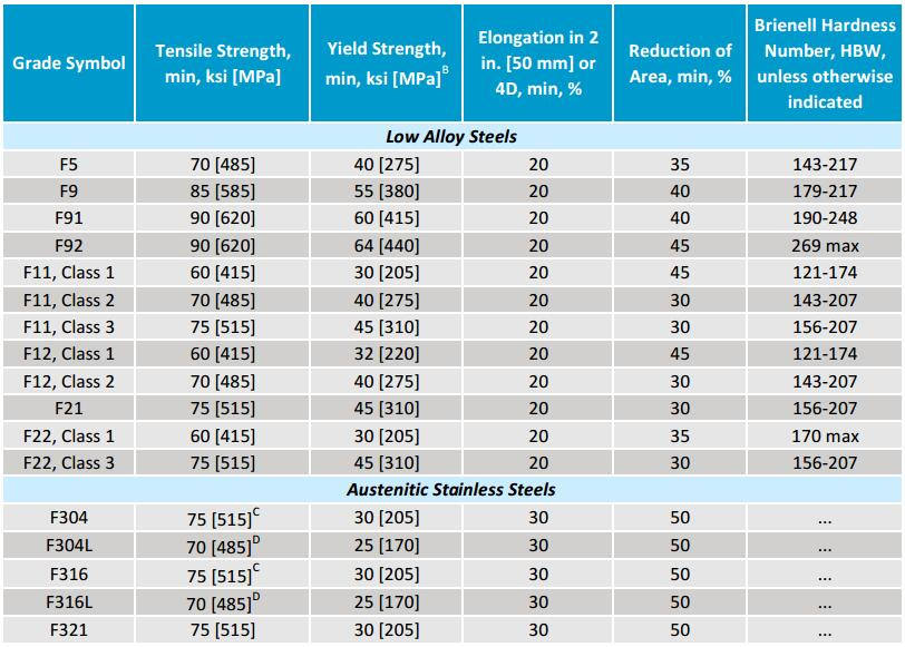 ASTM F11、F22ASTM A182中使用最多的合金钢等级