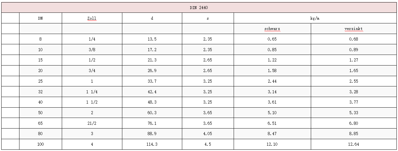 DIN 2440是德国钢管工业标准,规定了中等重量螺纹钢管的技术要求