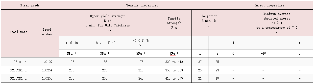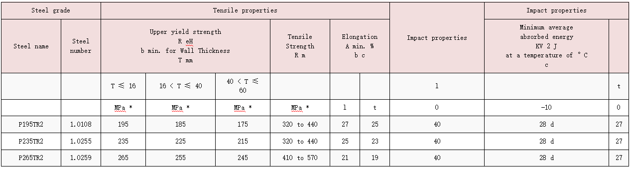 EN 10216是一个标准,涵盖了P235TR2级钢,非常适合压力应用。此外,欧洲标准EN 10216-1规定了两种质量钢的技术交付条件,即EN 10216-1 p235tr1和TR2。