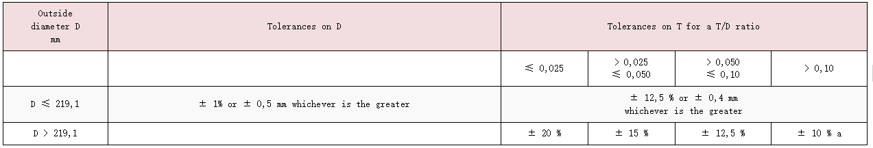  the dimensions (outside diameter D and wall thickness T) (see Table 7);
