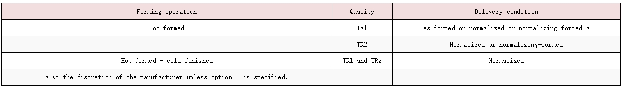 1) Delivery condition normalized or normalizing-formed for TR1 (see 7.2.2);