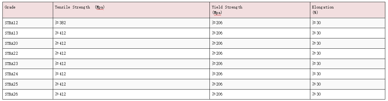2. STBA 12、STBA 13、STBA 20STBA 22的管子应采用无缝工艺或电阻焊工艺制造,STBA 23、STBA24、STBA 25STBA 26的管子应通过无缝工艺制造。