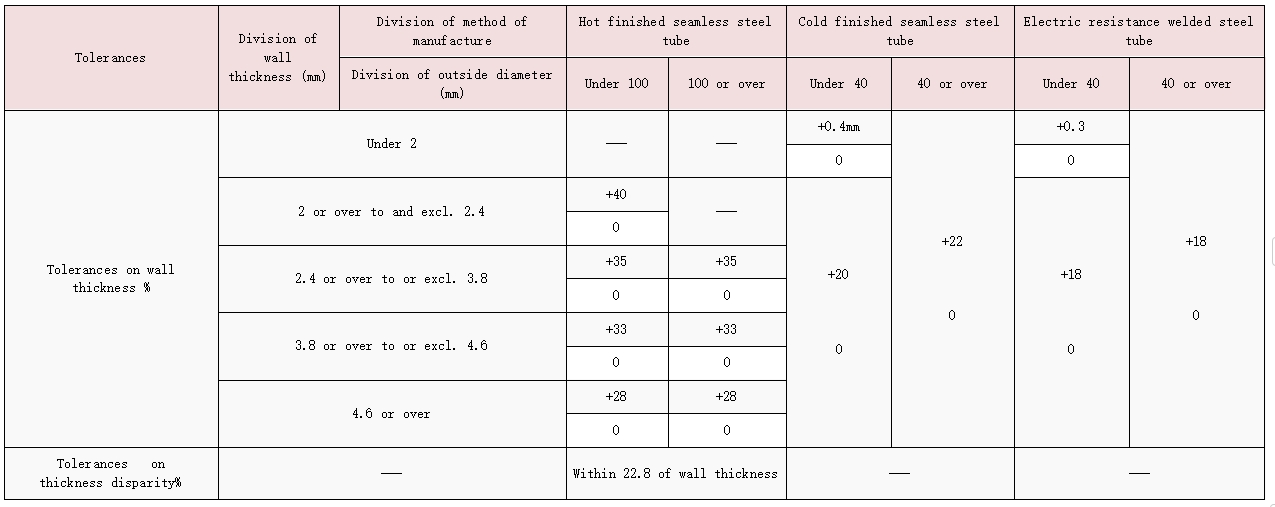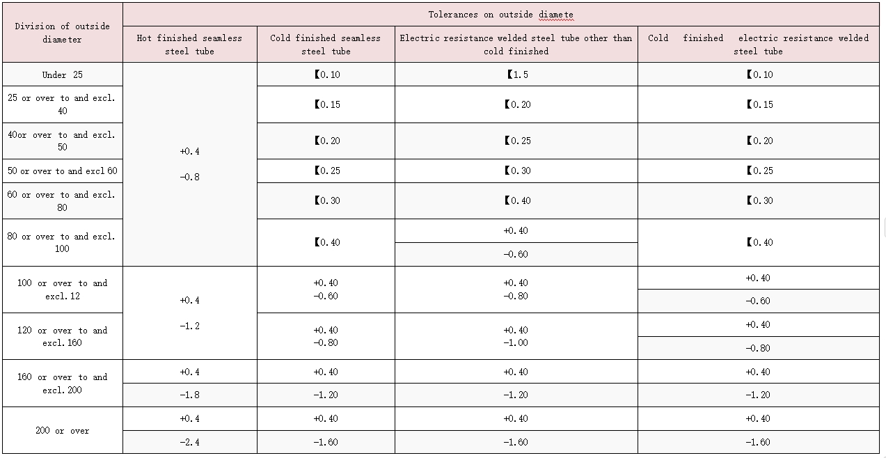 JIS G3461 Carbon Steel Pipes Dimensions Tolerance  JIS G3461碳钢管尺寸公差