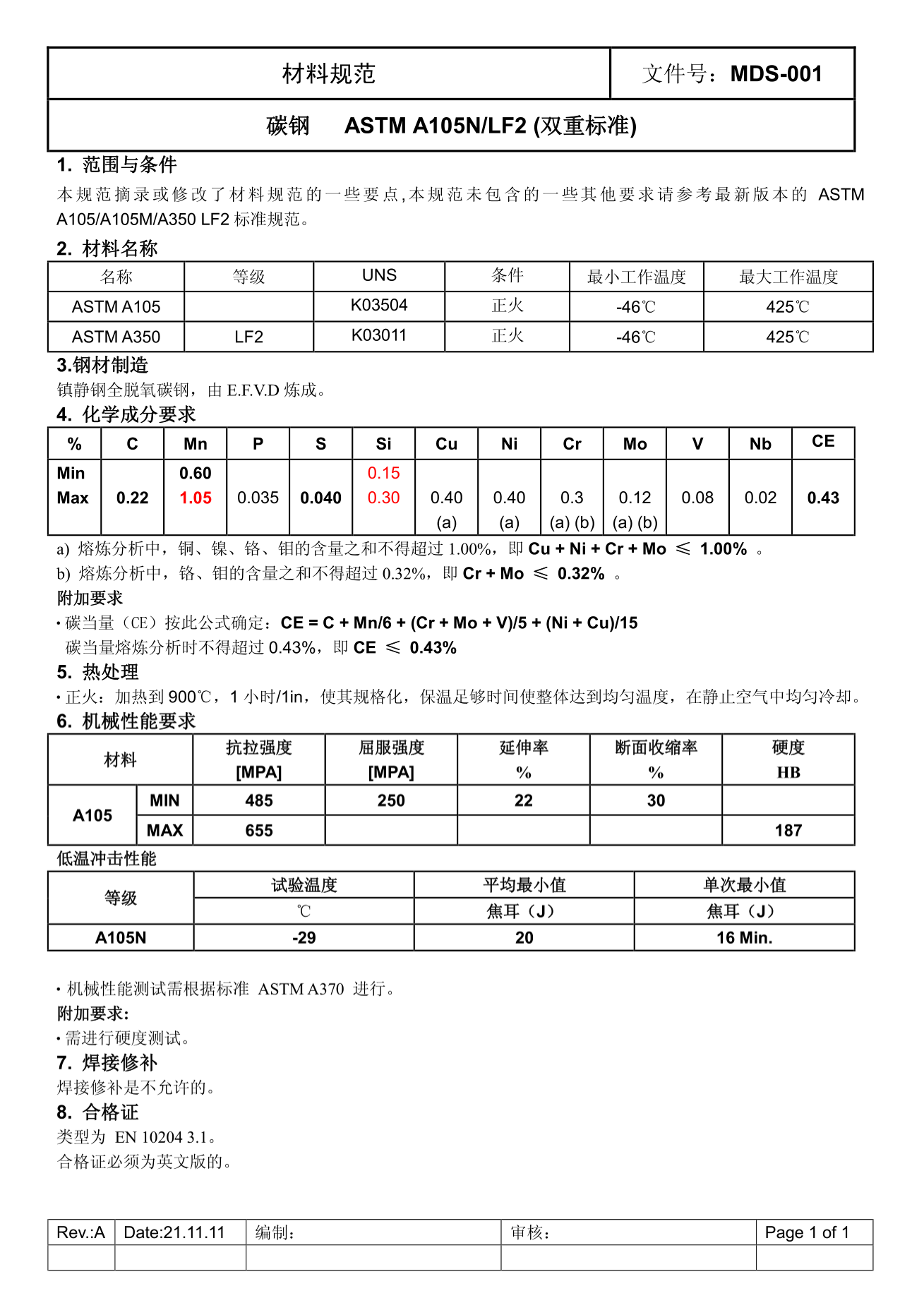 A105材料规范 标准图