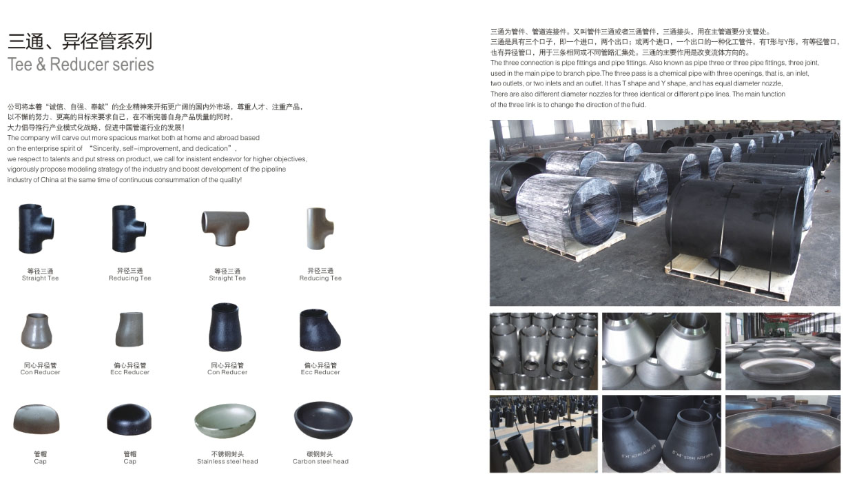 三通又称管件三通或者三通管件,三通接头等。主要用于改变流体方向的,用在主管道要分支管处。可以按管径大小分类。一般用碳钢,合金钢,不锈钢,铜,铝等材质制作。