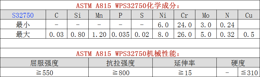 ASTM A815/A815M WPS32750化学及机械性能分析: