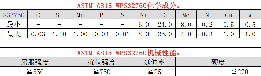ASTM A815/A815M WPS32760化学及机械性能分析: